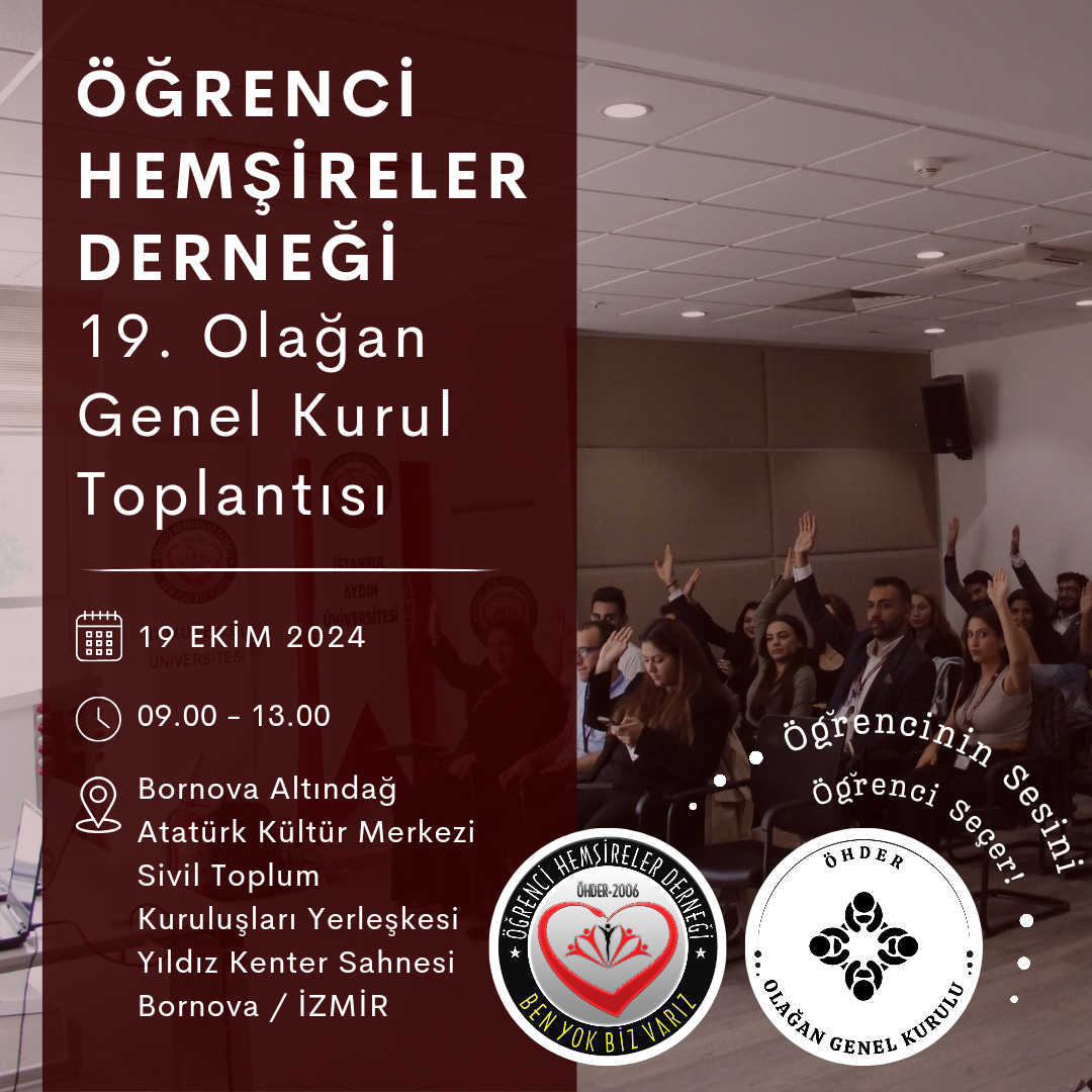 Öğrenci Hemşireler Derneği 19. Olağan Genel Kurul Toplantısı, 12 Ekim 2024 tarihinde saat 09.00 – 13.00 aralığında Bornova Belediyesi Sivil...Okumaya Devam Et